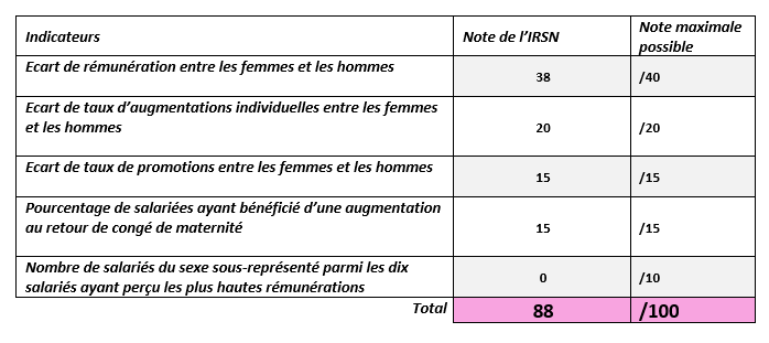 Dans ce cadre, l’IRSN obtient une note globale pour l’année 2020 de 88 points sur 100.