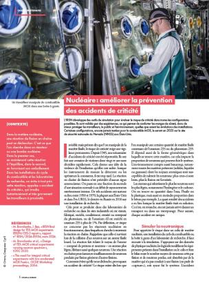 Cycle du combustible : Fabrication, utilisation, entreposage... Toutes les étapes et installations du cycle du combustible sont connectées. Observer ce cycle est nécessaire pour anticiper la sûreté et la radioprotection associées à ses évolutions, aux nouvelles installations ou nouveaux emballages de transport. Sûreté : De nouvelles préconisations pour les centrales. Exercice de crise : Les sapeurs-pompiers auprès des populations.
