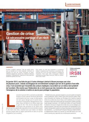 En janvier 2013, une fuite de gaz à l’usine chimique Lubrizol à Rouen provoque une crise de plusieurs jours. L’étude sociologique de cet événement souligne que lors de la gestion d’une telle crise, il est essentiel que l’ensemble des acteurs impliqués s’accordent sur un même récit prédictif de l’accident. Elle montre que l’élaboration de ce récit passe par des moments clés, qui jouent sur l’émergence de la solution à mettre en œuvre pour protéger la population.