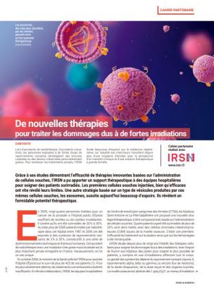 Grâce à ses études démontrant l’efficacité de thérapies innovantes basées sur l’administration de cellules souches, l’IRSN a pu apporter un support thérapeutique à des équipes hospitalières pour soigner des patients surirradiés. Les premières cellules souches injectées, bien qu’efficaces ont vite révélé leurs limites. Une autre stratégie basée sur un type de vésicules produites par ces mêmes cellules souches, les exosomes, suscite aujourd’hui beaucoup d’espoirs. Ils révèlent un formidable potentiel thérapeutique.
