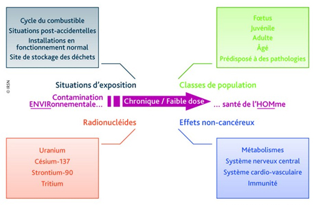 En fonction des résultats obtenus, ces données pourront dans un deuxième temps consolider et compléter le système de radioprotection de l’homme contre les effets des radionucléides dans le cas d’exposition chronique. Ainsi, la mise en évidence par exemple d’un effet d’une contamination chronique par le césium-137 sur le système cardio-vasculaire pourrait conduire à la prise en compte des pathologies non-cancéreuses pour l’estimation du risque de ce radionucléide pour la santé.