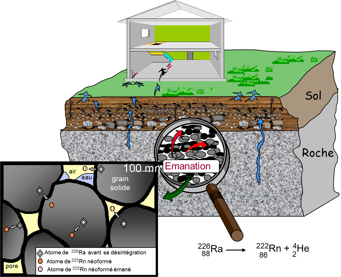 - le comportement du radon dans l'environnement et les facteurs influençant les concentrations en radon dans les sols et les bâtiments ;