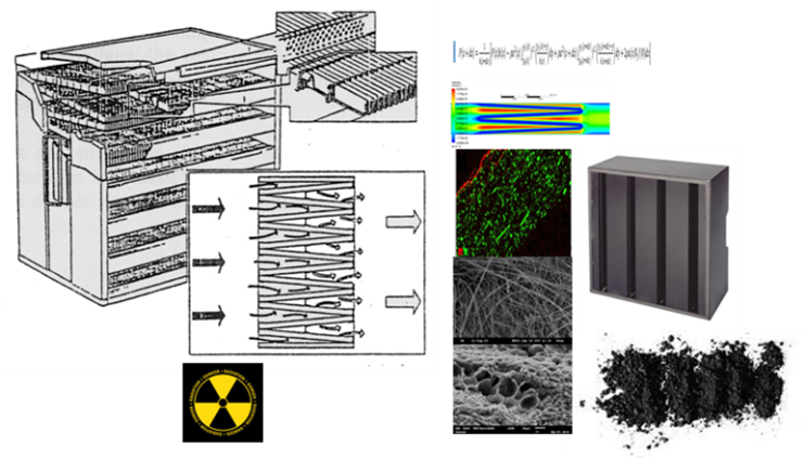Les situations, les paramètres, les types de filtration et de composés radioactifs étudiés sont très variés : par exemple, il peut s’agir d’une hausse de l’humidité pour lequel il est nécessaire d’évaluer la baisse d’efficacité d’un filtre THE fonctionnant dans de telles conditions, ou encore d’améliorer les connaissances et la compréhension du mécanisme d’échange isotopique ainsi que son impact sur les performances de piégeage d’effluents iodées (CH3I notamment) par les adsorbants poreux.