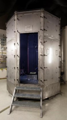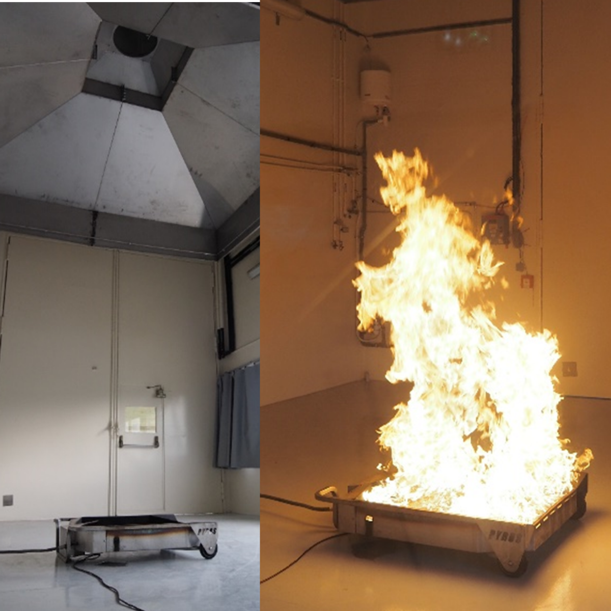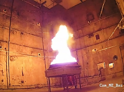 L’installation SATURNE de grand volume (2000 m3), bien ventilée et dotée d’une hotte calorimétrique grande échelle, permet de réaliser des essais feu en conditions de milieu ouvert (sans limitation d’oxygène) pour obtenir un développement maximal du feu. Elle permet une caractérisation de la puissance maximale du feu pour une large gamme de combustibles (chemins de câbles, armoires électriques…) :