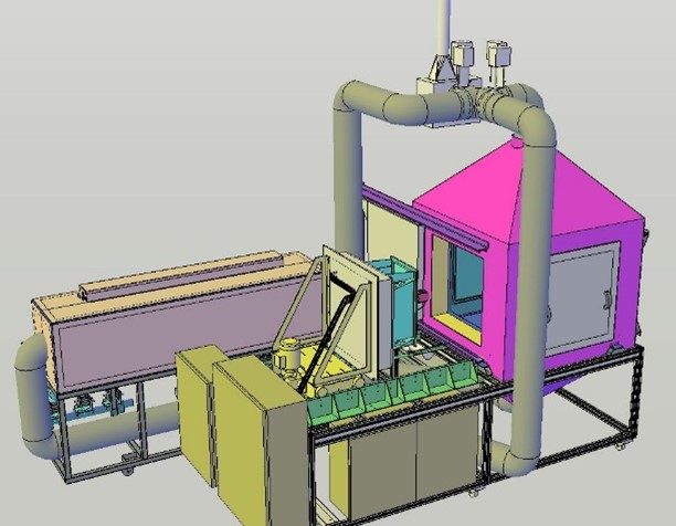 - Extraction des fumées (jusqu’à 15 000 m3.h-1) par une hotte carrée (25 m²)