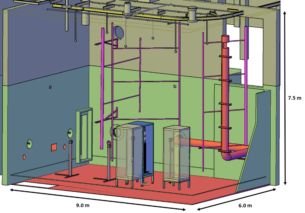Cette installation expérimentale est un caisson composé d'une enceinte de grand volume, couplée à un réseau de ventilation complexe, permettant de simuler des scénarios d'incendie de forte puissance dans différentes configurations représentatives d’incendie susceptibles de survenir dans des installations nucléaires :