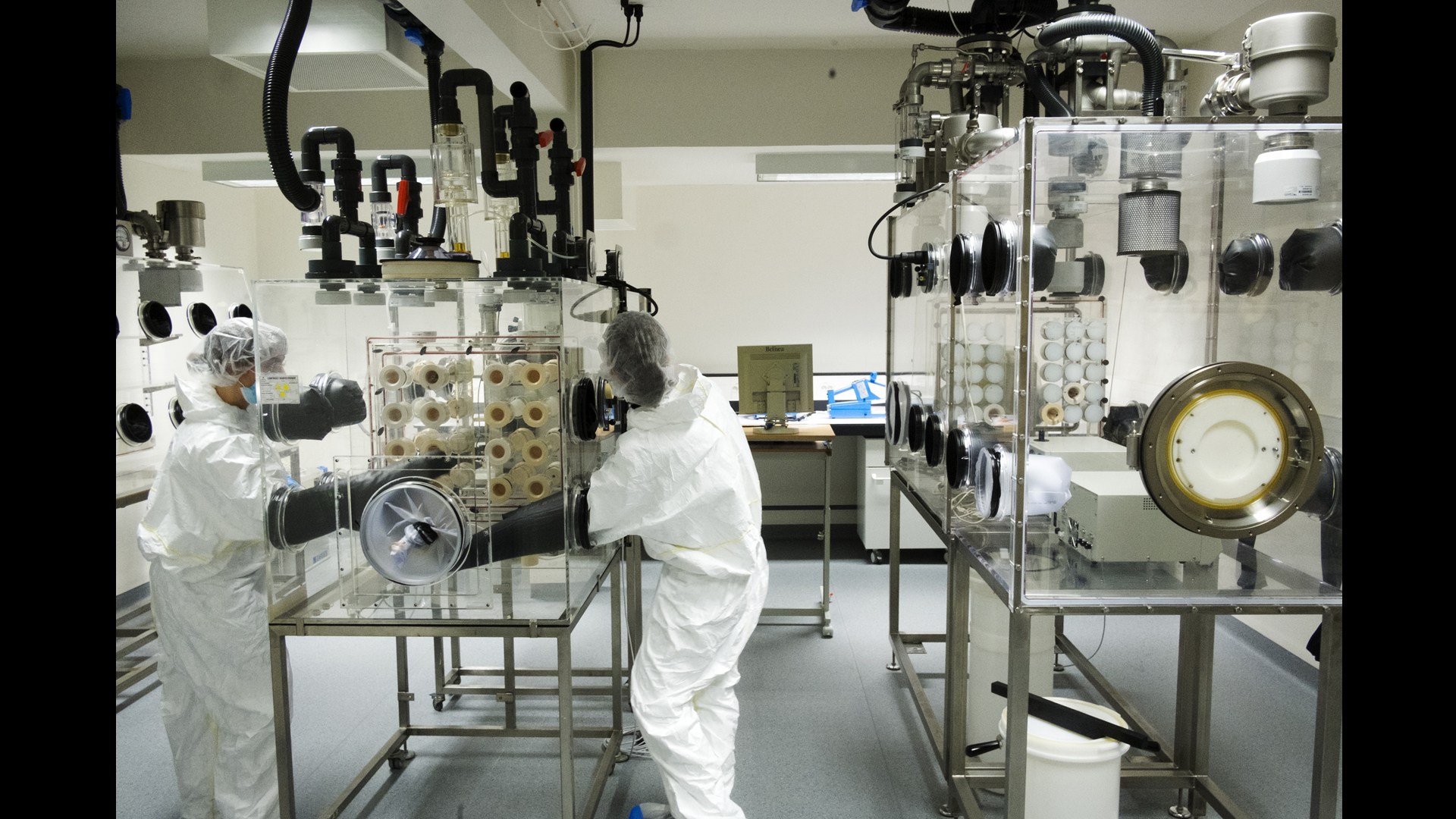 Elle comprend le matériel nécessaire pour une contamination par les trois voies principales (respiratoire, orale et transfert percutané) notamment une plateforme d’inhalation (quatre boîtes à gants) équipée de chambres d’inhalation « nose only ».