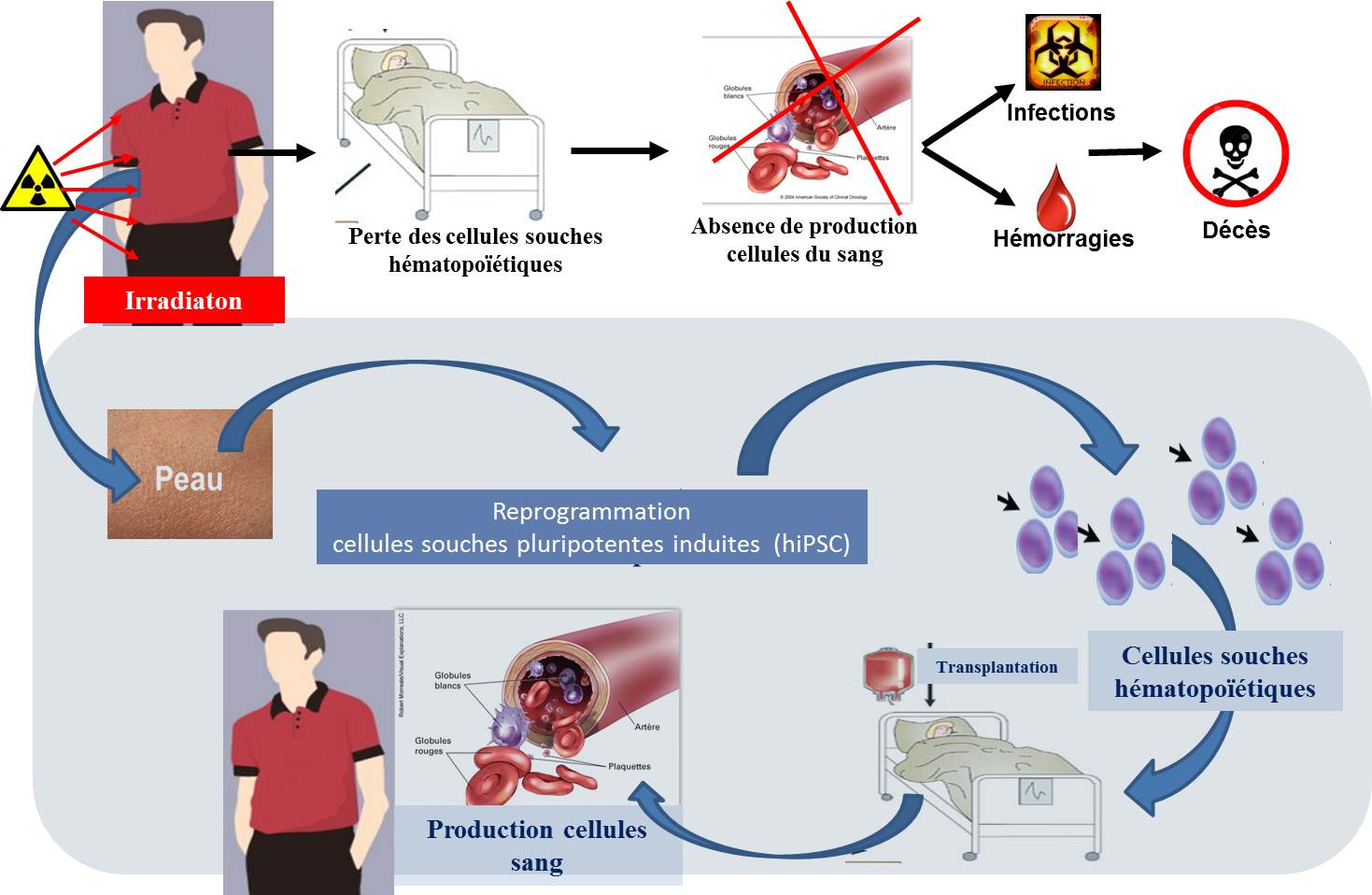 Pour la prise en charge médicale des irradiations accidentelles, un protocole international existe, le classement Metropol (Medical Treatment Protocols for radiation accident victims), et pour la forme hématopoïétique en particulier, il existe un consensus européen qui établit un protocole de gestion thérapeutique des accidents d’irradiation de masse. L'irradiation accidentelle étant souvent hétérogène, dans certains cas, les régions de la moelle osseuse qui n’ont pas été touchées par l’irradiation peuvent rétablir la production hématopoïétique. Le consensus européen établit, dans un premier temps, un traitement aux cytokines pour stimuler la production des cellules sanguines. Si le dysfonctionnement de la moelle osseuse (en l’espèce, l’aplasie) persiste durant plus de 14 jours, le patient fait l’objet d’une greffe de cellules souches hématopoïétiques. Or, le traitement en urgence de population lors d’un accident, d’un acte de malveillance ou de militaires lors d’un conflit nucléaire nécessite de disposer de produit congelable, prêt à l’emploie, permettant de traiter un grand nombre d’individus.