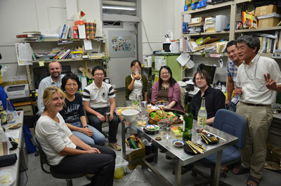Avec nos collègues japonais du laboratoire d'écologie animale du Pr. Ueda (à droite sur la photo). Université de Rikkyo (Japon). Un pot de départ avait été organisé par nos collègues japonais.
