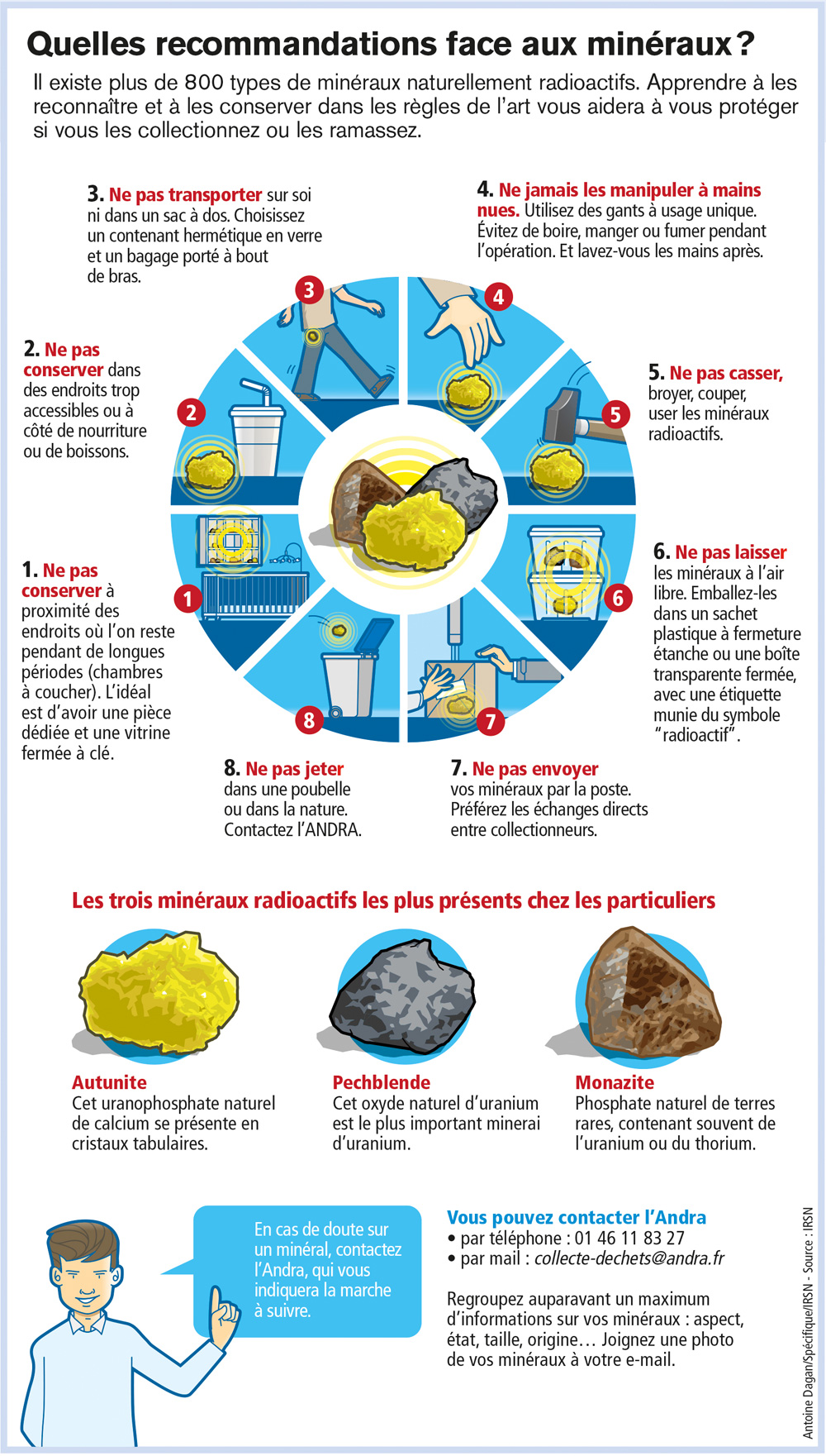 Des spécialistes en radioprotection de l’IRSN interviennent régulièrement dans les musées ou auprès de particuliers qui disposent des grandes collections de minéraux. Ils examinent les risques radiologiques puis suggèrent des solutions.