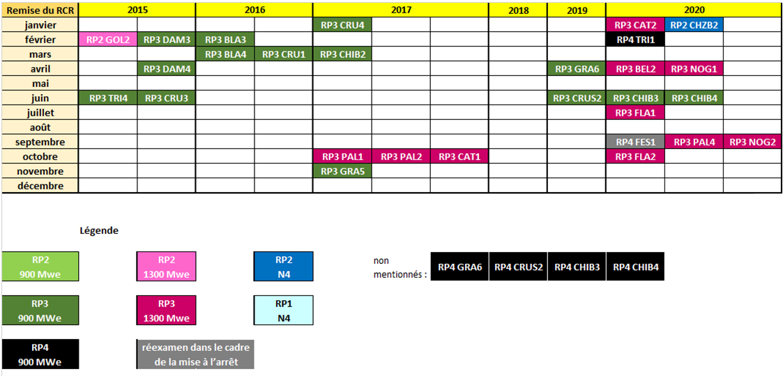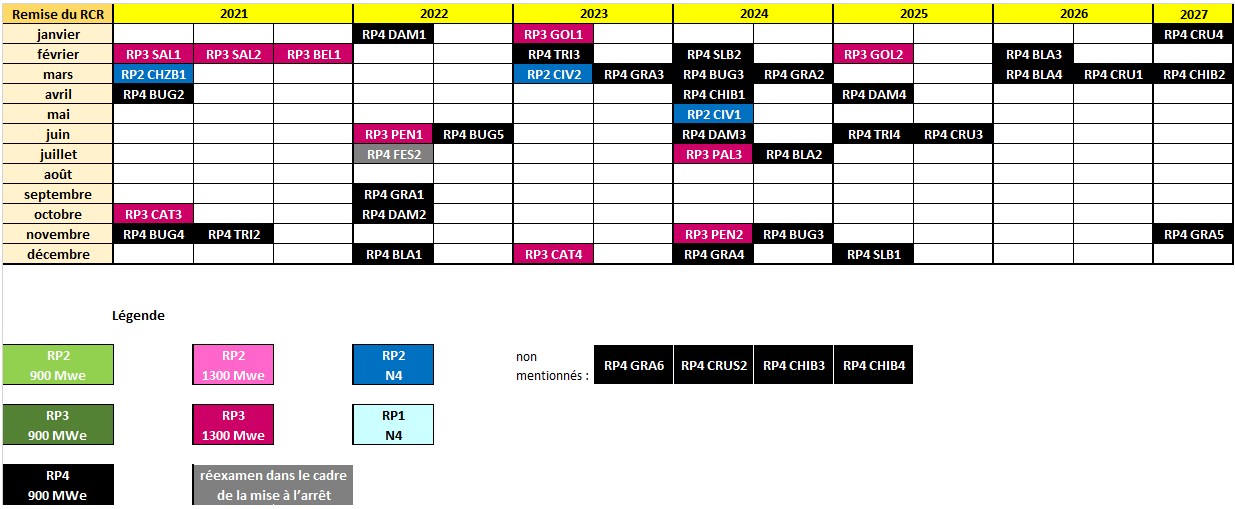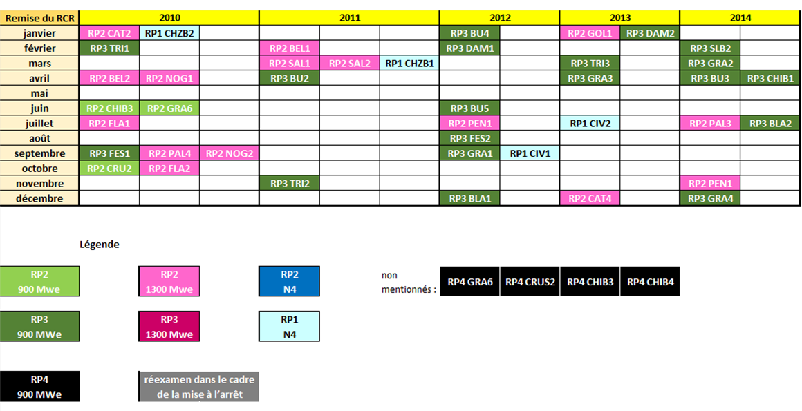 En 2010, conformément à la loi du 13 juin 2006, EDF a transmis les premiers rapports de conclusions de réexamen périodique (RCR). Depuis, tous les 10 ans, EDF transmet, pour chaque réacteur, un RCR.