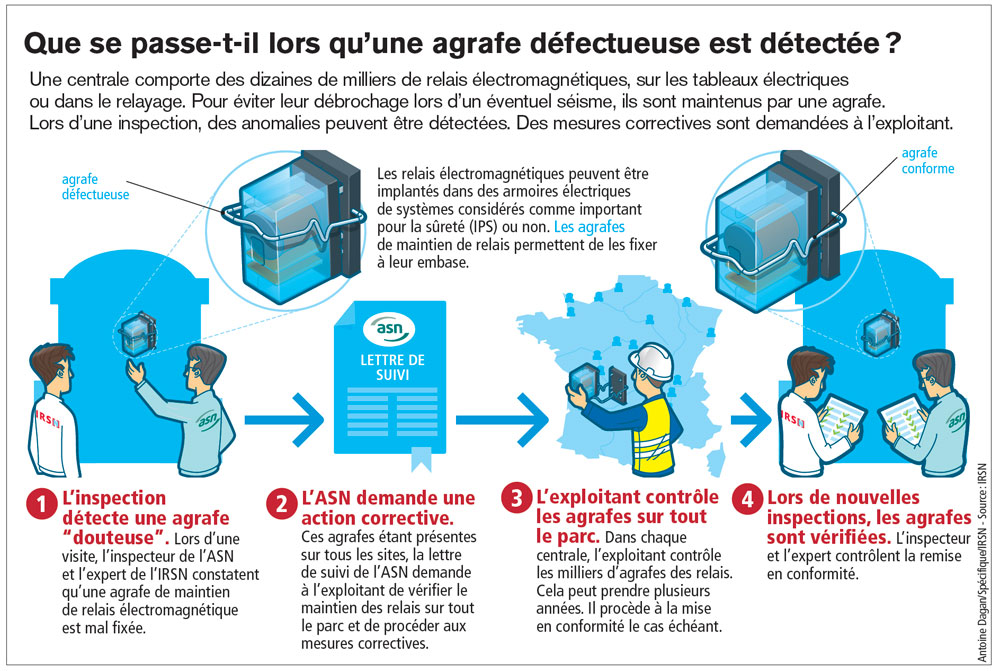 La lettre de suite impose des délais de réalisation pour les travaux correctifs, selon la gravité de l’écart. La mise en œuvre peut être immédiate ou à l’échéance du prochain arrêt de tranche. « Nous vérifions sur document justificatif et à l’occasion d’un contrôle ultérieur sur le site », explique Éric Gaucher, responsable du bureau Exploitation des centrales nucléaires à l’ASN.