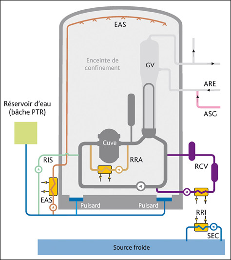 Principaux circuits auxiliaires et de sauvegarde d’un réacteur nucléaire (Source: Didier Jacquemain/IRSN)
