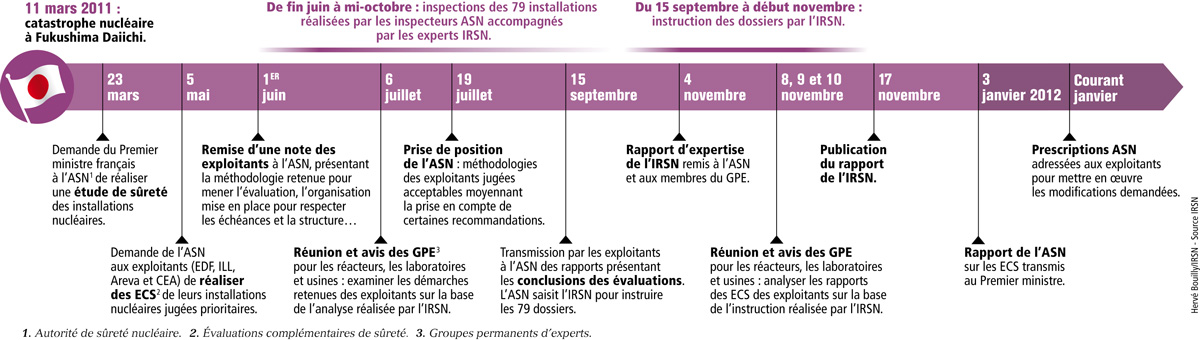 Les accidents nucléaires de Three Mile Island aux États-Unis en 1979 ou de Tchernoby en Ukraine en 1986 avaient pour origine des défaillances internes. Celui de Fukushima en mars 2011a été provoqué par des agressions naturelles extrêmes. Ceci a conduit à se demander jusqu’à quel niveau de séisme et d’inondation les centrales européennes, et notamment françaises, pouvaient résister. Et quels seraient les délais avant que des rejets surviennent dans l’environnement en cas de perte totale d’alimentation électrique ou de source de refroidissement.